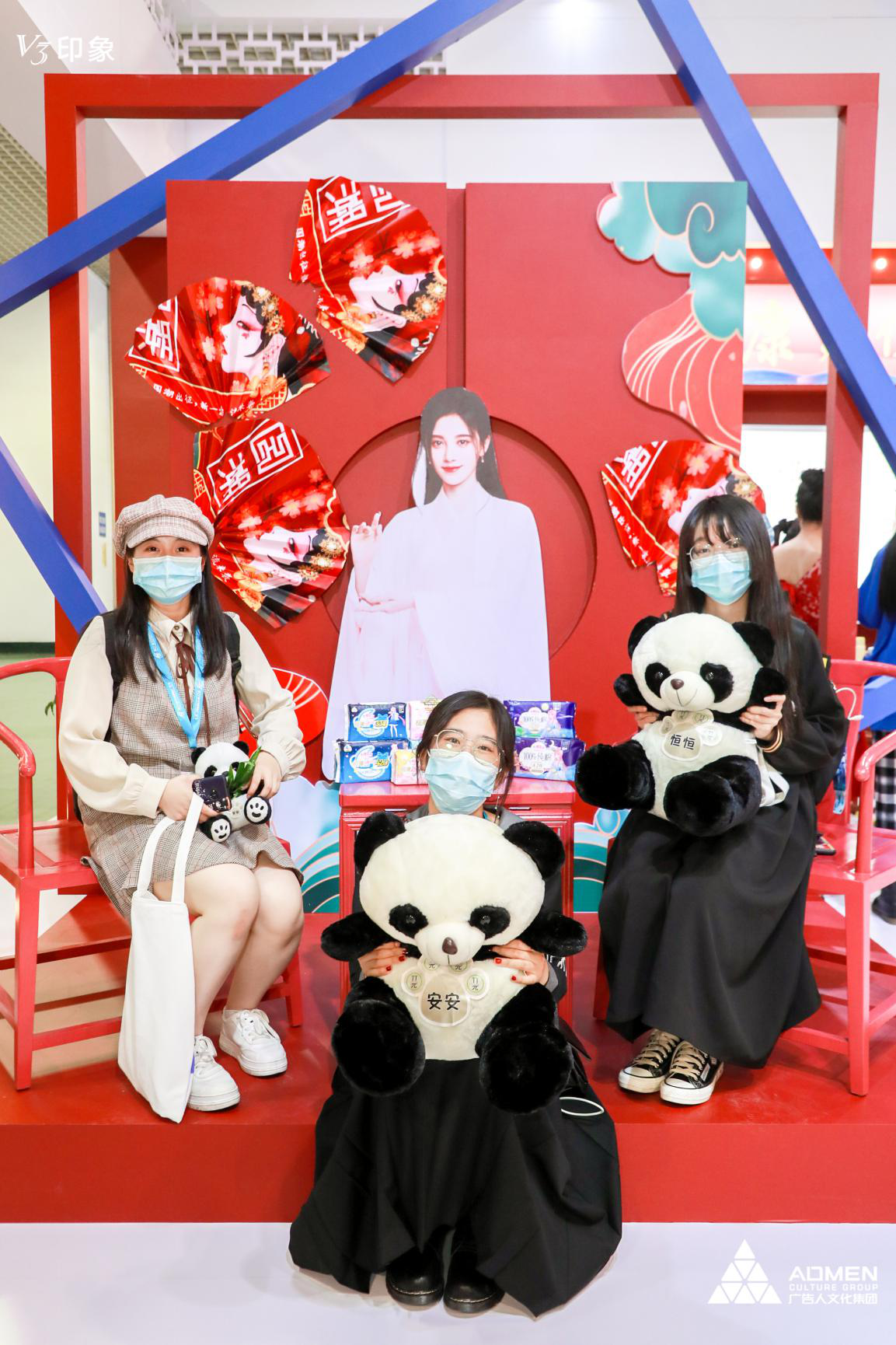 尊龙集团集团展位的正红布景极具特色,吸引了众多国风爱好者前来打卡,不少汉服小仙女都被熊猫玩偶萌翻了,纷纷合影留念。